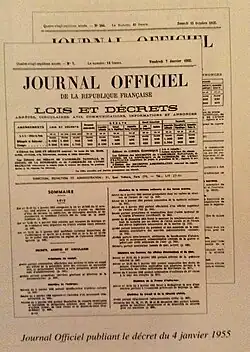 - ↑ Décret du 4 janvier 1955