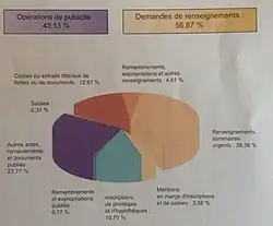 Avant l'informatisation, la répartition entre ces deux catégories variait assez peu d'année en année : entre 43 et 45 % pour les opérations liées à la publicité et 55 à 57 % pour les demandes de renseignements de toute nature.