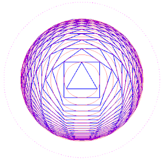 Les premières étapes de la construction sont les suivantes : on inscrit dans un cercle unité un triangle équilatéral, à l'intérieur duquel on inscrit un cercle . Dans on inscrit un carré, à l'intérieur duquel on inscrit un cercle . Dans on inscrit un pentagone régulier, dans lequel on inscrit un cercle , etc.