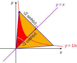 La constante 1/√2 est utilisée pour définir les fonctions hyperboliques cosh et sinh à partir des longueurs des côtés adjacent et opposé d'un secteur hyperbolique, de façon à retrouver une similarité avec la définition des cosinus et sinus circulaire dans le cercle trigonométrique.