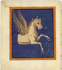 Au Moyen Âge, les clercs latins connaissaient les noms Equus et Pegasus par les encyclopédies et les quelques manuscrits des Aratea, mais ils apprirent dès l’an mil le nom arabe de cette figure. Si Gérard de Crémone ne donne dans son Almageste (ca. 1175) que le nom latin de la constellation, sachant qu’à son époque on ne lit pas encore le nom grec dans le texte, ce qui n’adviendra qu’à la Renaissance, nous trouvons dans l’Uranometria de Johann Bayer (1603), une liste de noms connus dans les différentes langues sous le titre PEGASUS, en particulier le grec Ἳππος, le latin Equus, et Alpheras, qui est l’arabe الفرس al-Faras[10]. Ces noms figurent encore dans plusieurs catalogues jusqu’à ce que la nomenclature approuvée en 1930 par l’Union astronomique internationale (UAI) ne chasse définitivement les appellations autres que Pegasus, à l’exception du grec Πήγασος.