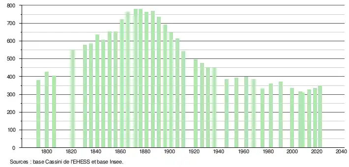 - ↑ Fiches Insee - Populations de référence de la commune pour les années 2006, 2007, 2008, 2009, 2010, 2011, 2012, 2013, 2014, 2015, 2016, 2017, 2018, 2019, 2020, 2021 et 2022.