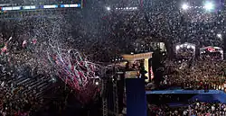 Lancer de confettis après un discours de Barack Obama durant la Democratic National Convention de 2008.