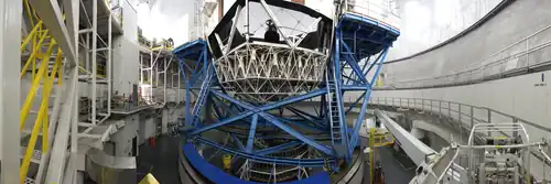 - La rotation de la Terre fait en sorte que l'objet observé est en déplacement relatif par rapport à un observateur terrestre. Les coordonnées horizontales varient conséquemment à un rythme qui dépend essentiellement de la déclinaison des objets visés[4]. Leur suivi par un instrument est donc moins simple qu'avec, par exemple, une monture équatoriale.