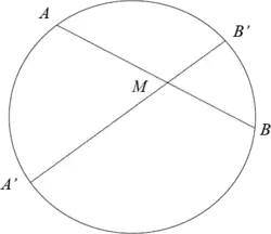Étant donné un point à l'intérieur d'un cercle de centre et de rayon , toutes les cordes passant par fournissent un produit constant égal à . C'est l'opposé de la puissance de par rapport au cercle.