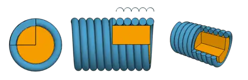 Le filage rond est un fil à géométrie circulaire (classique) que l'on embobine autour de l'âme, tandis que le filage plat est un fil à géométrie rectangulaire (rendant la zone de contact entre deux spires parfaitement jointive et lisse).
