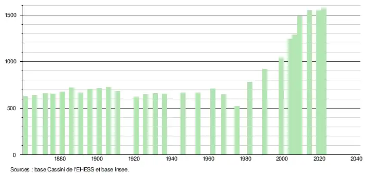 - ↑ Fiches Insee - Populations de référence de la commune pour les années 2006, 2007, 2008, 2009, 2010, 2011, 2012, 2013, 2014, 2015, 2016, 2017, 2018, 2019, 2020, 2021 et 2022.