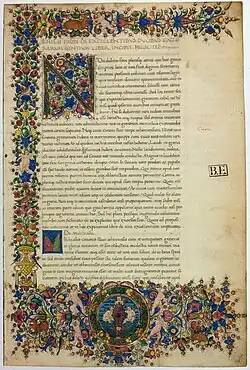 Première page du manuscrit enluminé (vers 1460) des Vies des grands capitaines de la bibl. univ. de Modène.