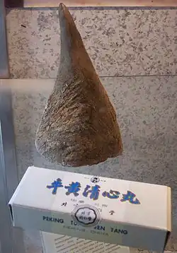 En Europe (notamment en France), la corne de rhinocéros fut utilisée pendant la période coloniale pour la fabrication de cannes, et les trophées de rhinocéros étaient prisés aux XIXe et XXe siècles. En Extrême-Orient, la corne de rhinocéros est recherchée par les sculpteurs pour façonner toute sorte d'objets d'art comme les coupes libatoires : les premières sculptures recensées sont situées à Nara au Japon qui abrite quelques coupes datant du VIIIe siècle. Dans la Péninsule Arabique et notamment au Yémen, on en fait traditionnellement le manche des poignards (« Janbiya ») des jeunes hommes riches (c'est même le symbole du sultanat d'Oman). Mais la corne de rhinocéros est surtout commercialisée sous forme de poudre pour la médecine asiatique, notamment pour stimuler la libido. Le comportement sexuel des rhinocéros les a beaucoup desservis : en effet, contrairement à un grand nombre d'espèces, l'accouplement peut durer plus d'une demi-heure. C'est sans doute pourquoi certains attribuent, sans fondement, des effets thérapeutiques et aphrodisiaques à la corne de rhinocéros broyée, alors que celle-ci est constituée principalement de kératine et d'Ivoire, une substance banale retrouvée dans les ongles, les cheveux et les sabots[10]. En Chine, le kilogramme de poudre de corne de rhinocéros se vend autour de 50 000 USD[11]. En 2007, le prix au kilogramme d'une corne de rhinocéros vaut en France environ 1 500 € et jusqu'à 300 000 € si elle est ancienne et sculptée. En Afrique, le commerce illégal de corne de rhinocéros vers l'Asie est considéré comme plus rentable que celui de l'or, des diamants ou même de la drogue, ce qui inquiète profondément les biologistes[12]. En 1970, il y avait 70 000 rhinocéros noirs en Afrique, 15 000 en 1981 et seulement 4 200 en 2011, principalement en Afrique du Sud, Namibie, Zimbabwe et Kenya[11]. L'intégralité des 300 rhinocéros recensés en 2002 dans le parc Limpopo au Mozambique ont été exterminés en 2013[13], et la lutte contre les réseaux criminels est particulièrement difficile, surtout dans des pays où la corruption est parfois importante.