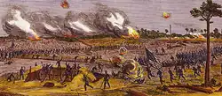 - ↑ « charge qui est probablement la dernière de la guerre de Sécession, et qui a été une des plus courageuse que l'on connaisse » (« Probably the last charge of this war, it was as gallant as any on record. », Harper's Weekly, May 27, 1865