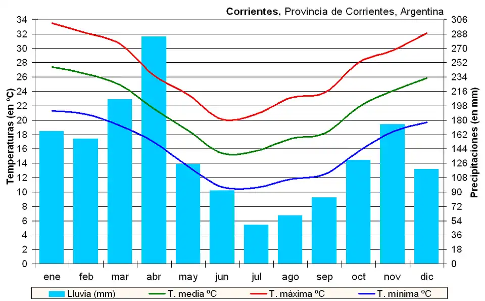 La température annuelle moyenne est de 21 °C, avec des moyennes maximales et minimales de 33 °C et 10 °C respectivement. Les précipitations annuelles atteignent 1 200 millimètres. La grande proximité du fleuve Paraná contribue à adoucir les pointes de température, qui y sont nettement moins fortes qu'à Resistencia, sa voisine, trop éloignée du dit fleuve.