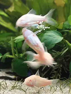 Corydoras aeneus possède aussi une variété albinos très répendue et commercialisée mondialement.