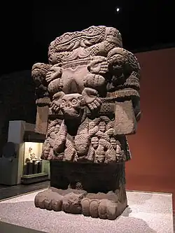 Dans le polythéisme aztèque, les dieux étaient souvent hérités d'autres cultures : les Aztèques assimilaient en effet tous les dieux des peuples qu'ils vainquaient. Par exemple le dieu de la fertilité, Xipe-Totec, était vénéré par les Yopi. Tezcatlipoca et Quetzalcóatl étaient déjà l'objet d'un culte par des civilisations plus anciennes de Mésoamérique et furent adorés par différentes cultures sous différents noms. Si certains de ces dieux avaient des caractéristiques incompatibles avec les leurs, ils se contentaient de lui rendre un culte dans des temples particuliers[11] : à Tenochtitlan, il s'appelait Coacalco, la maison du serpent.