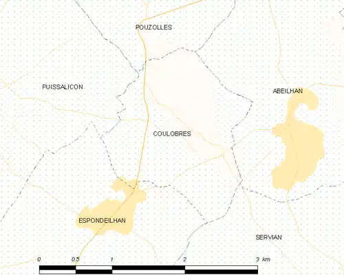 - ↑ « Orthodromie entre Coulobres et Roujan », sur fr.distance.to (consulté le ).