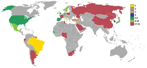 | Classement de la Coupe du monde[12] | ||||||||||||||||||||||||||||||||||||||||||||||||||||||||||||||||||||||||||||||