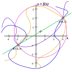 Une courbe du plan est dite algébrique si son équation cartésienne est polynomiale. Le plus grand degré (somme des degrés en x et en y) de l'équation cartésienne est appelé le degré de la courbe. Par exemple, la courbe ci-contre a pour équation cartésienne , le premier terme est de degré 2 + 4 = 6, et tous les autres termes sont de degré inférieur à 6. C'est donc une courbe de degré 6, ou sextique.