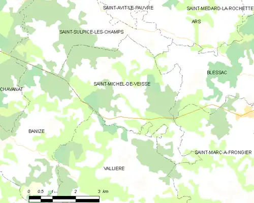 - ↑ « Orthodromie entre Saint-Michel-de-Veisse et Aubusson », sur fr.distance.to (consulté le ).