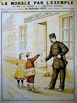 Les cours de morale dans l'enseignement français sont introduits dans la foulée des lois Jules Ferry de 1881 et 1882 et sont rapidement devenus un pilier de l’enseignement français[1]. La loi du précise pour l'enseignement primaire : " L'enseignement de la morale doit s'appuyer sur des exemples, des récits, des observations familières, des maximes empruntées à l'expérience. L'on recommande que le premier quart d'heure de chaque journée de classe soit consacré à l'enseignement de la morale."