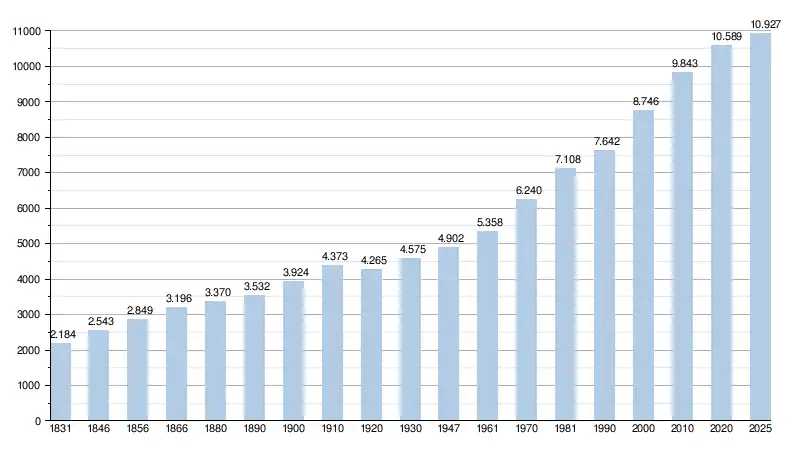 Au , la population totale de cette commune est de 10 927 habitants[2].