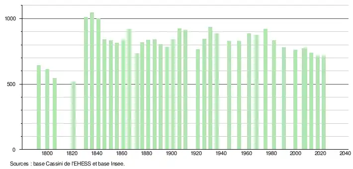 715 hab. (2022 en évolution de −0,83 % par rapport à 2016)