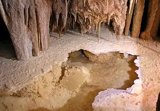 La partie anciennement connue est le premier secteur étudié ; c'est là que situe la salle d'entrée dans laquelle débouche le puits artificiel d'environ 6 m de profondeur. Tout autour de la salle d'entrée, on peut descendre à différents endroits jusqu'à des siphons et une série de petits lacs d'eaux saumâtres. À l'est, se trouve un grand gour peu profond qu'il faut traverser pour accéder à un petit puits. À sa base, commence la galerie dite Pista Americana qui se termine dans la salle du Mondmilch.