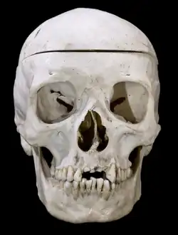 Chez l'être humain, le crâne est la partie supérieure du squelette. Il est essentiellement destiné à protéger l'encéphale. Il repose sur le rachis cervical par l'intermédiaire de l'atlas (vertèbre C1), et maintien en antérieur le massif facial.