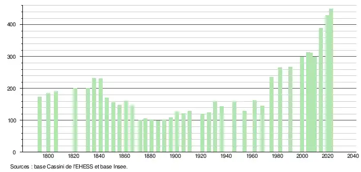 - ↑ Fiches Insee - Populations de référence de la commune pour les années 2006, 2007, 2008, 2009, 2010, 2011, 2012, 2013, 2014, 2015, 2016, 2017, 2018, 2019, 2020, 2021 et 2022.