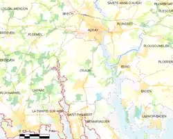 La commune de Crac'h est bordée à l’est par la rivière d'Auray, à l’ouest par la rivière de Crac'h, au sud par les communes de Saint-Philibert et Locmariaquer et au nord par la commune d'Auray.