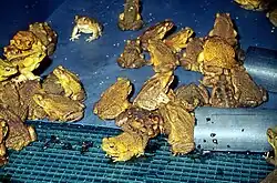 Un spécimen de Rhinella marina du Salvador. Les glandes parotoïdes sont visibles derrière les yeux.
