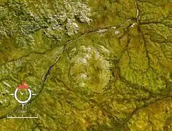Bien qu'il ne soit pas visible depuis la surface, sa forme sur les photos aériennes et photos satellite est caractéristique et a conduit à sa découverte[1].