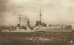 Le SMS Scharnhorst (1906), le Gneisenau (1908) et le Blücher furent les derniers croiseurs cuirassés à sortir des chantiers allemands.