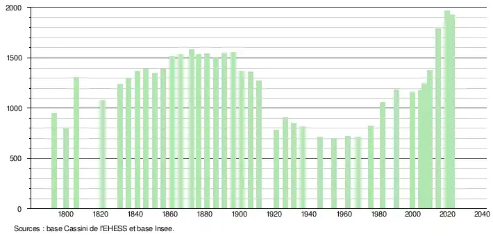 - ↑ Fiches Insee - Populations de référence de la commune pour les années 2006, 2007, 2008, 2009, 2010, 2011, 2012, 2013, 2014, 2015, 2016, 2017, 2018, 2019, 2020, 2021 et 2022.
