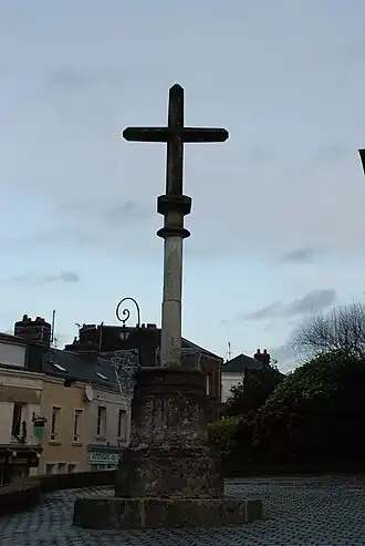- 1 2 3 « Croix de village en pierre dans le jardin de l'église », notice no PA00101047, sur la plateforme ouverte du patrimoine, base Mérimée, ministère français de la Culture.