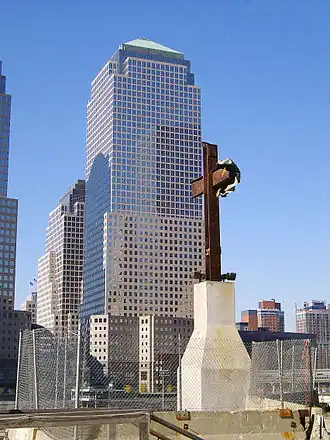 Le World Trade Center est un ensemble immobilier construit avec la méthode américaine : l'ensemble de l'édifice est construit en acier, cœur compris [1]. À la suite des attaques terroristes, une opération massive a été lancée pour nettoyer le site et tenter de trouver des survivants parmi les décombres. Le 13 septembre 2001, un ouvrier du site nommé Frank Silecchia a découvert une croix de 20 pieds (6,1 m) [2] de haut formé de deux poutres d'acier parmi les débris du 6 World Trade Center [3]. Ces débris proviendraient de la tour Nord [4]. La croix sert rapidement de sanctuaire, de lieu de recueillement et de prière [5]. Cependant, devant la tâche colossale de terrassement, la croix est au fil du temps devenue une contrainte technique et gêne l'avancement du chantier. La croix a été ainsi été érigée sur un piédestal le 4 octobre sur une partie de l'ancienne place sur Church Street près de Liberty, à la demande des ouvriers et avec approbation du bureau du maire de New York, Rudy Giuliani. Elle a continué à demeurer un sanctuaire et devient à ce moment-là une attraction touristique [6].