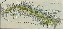 Les luttes pour l'indépendance contre l'Empire colonial espagnol remontent au milieu du XIXe siècle avec la guerre des Dix Ans qui débuta en 1868. La guerre d'indépendance cubaine proprement dite a lieu en 1896-1898[14] ; c'est pendant cette guerre que sont mis en place, pour la première fois dans l'Histoire, des camps de concentration[15]. Le général espagnol Valeriano Weyler a organisé la déportation de 400 000 civils cubains, dans le but de les séparer des rebelles, qui trouvaient auprès des paysans abri et nourriture. 100 000 Cubains sont morts des suites de la politique espagnole de reconcentration[15]. Les États-Unis intervinrent sous des prétextes humanitaires, dans la guerre d'indépendance cubaine[14], qui avait fait 200 000 morts depuis 1895 (soit 1/8 de la population), lors de la guerre hispano-américaine. Ils occupèrent ensuite l'île de 1901 à 1902, puis de 1905 à 1909.