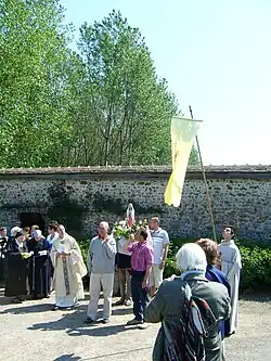 Bannière de sainte Alpais pendant la procession du pèlerinage, le lundi de Pentecôte.