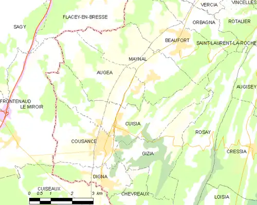 Carte de la commune de Cuisia et des proches communes.