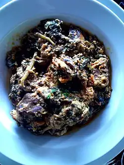 Fétri déssi - Gboma déssi: (gboma = épinards, déssi = sauce); à base de feuilles de gboma, on y rajoute les mêmes crustacés, de la viande ou du poisson fumé, etc.
