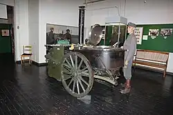 Karl Rudolf Fissler de Idar-Oberstein, a inventé une cuisine de campagne mobile en 1892, que les Allemands en sont venus à parler de Gulaschkanone (Canon Goulash) parce que la cheminée du poêle ressemblait à une pièce de guerre lorsqu'elle était démontée et repliée pour le remorquage. Au fur et à mesure que la technologie évoluait, de plus grandes remorques ont évolué à mesure que les chevaux disparaissaient au profit de véhicules motorisés qui sont plus capables de transporter des charges plus lourdes. Au cours de la Seconde Guerre mondiale, la cuisine de campagne servait à renforcer le moral des troupes au Royaume-Uni, ce qui s'inscrivait dans la culture de la pause thé et en particulier à la suite de l'expérience réussie de la dame du thé en temps de guerre sur la productivité et le moral[1]. Les grandes cuisines de campagne (désormais appelées couramment "cuisines volantes" en raison de la vitesse plus grande avec laquelle elles peuvent être déployées) peuvent desservir des bataillons entiers.