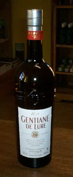 Cette liqueur alpine, considérée comme typique de la Savoie est aussi élaborée dans les Alpes du Sud. De couleur jaune doré, elle est le résultat de la macération du génépi, nom vernaculaire qui désigne différentes espèces d'armoises appartenant à la famille des Astéracées. Seuls le génépi noir et le génépi blanc sont utilisés. La tradition est de récolter ces plantes en juillet et de les faire macérer dans de l'alcool et du sucre titrant ainsi environ 40° suivant sa recette traditionnelle (40 brins de génépi plus 40 g de sucre dans de l'alcool à 40° pendant 40 jours). Pour la part des liqueurs de génépi du commerce, trois fabricants se partagent le marché : un à Forcalquier, un à Barcelonnette[59] et un à Châteauroux-les-Alpes[60].