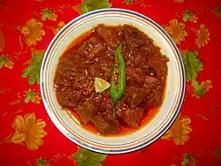 - agneau : y compris rogan josh, bhuna gosht[21], kadhai gosht, raan gosht, dal gosht, saag gosht, nihari, rara gosht, paye da shorba ;