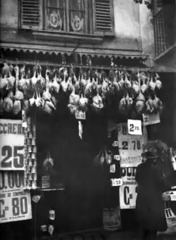 - ↑ L'avis apposé à la vitrine des auberges « Giovedì trippa » (le jeudi, on sert des tripes) était lié au rythme de travail des abattoirs municipaux : les bovins étaient abattus dans la nuit du dimanche au lundi. Tandis que les abats frais (cervelle, ris, foie) se retrouvaient aux étals des bouchers dès le lundi, les tripes, qui nécessitaient une préparation plus longue et une première cuisson, n'y arrivaient qu'à l'aube du jeudi.