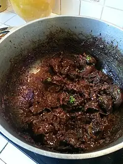 Le tangue est cuisiné sous forme de cari[1] et il est souvent accompagné de riz et servi dans des feuilles de bananier.