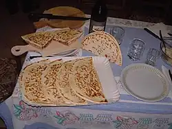 La piadina, ou piada, est composée d’une pâte de farine de blé, saindoux (ou huile d’olive), sel et eau, cuite traditionnellement sur un plat en terre cuite (dit teglia, en italien, ou teggia, en dialecte romagnol), mais plus communément sur une plaque de métal. Jusque dans les années 1950, c’était le pain des pauvres.