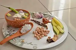 - L’upma, fait de semoule de froment, d'oignons, de poivrons. Le froment peut être remplacé par du riz brisé ou toute autre céréale présentant l'apparence de la semoule.