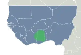 De nombreux villages étaient situés le long de la Volta Blanche, qui traverse le Ghana du nord au sud avant de se jeter dans l'Atlantique. Les abris sous roche servaient aussi d'habitations, surtout au sud, près de la côte atlantique. On les trouve dans le sud-ouest du Ghana et le sud-est de la Côte d'Ivoire[8].