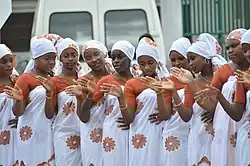 La plus célèbre danse traditionnelle mahoraise est le debaa, sorte de rencontre sous forme de chant et de danse religieux[9]. Les femmes vêtues de chatoyants lambas aux motifs similaires, et assemblées d'après des critères d'appartenance à une même petite communauté forment un chœur lancinant, laissant aux hommes l'apport musical rythmé. Ainsi s'organise une forme de rivalité chorégraphique entre villages.
