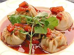 Les plats de viande sont à base de yak, chèvre, ou mouton, souvent sechés ou cuisinés dans un bouillon épicé avec des pommes de terre[39].