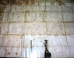 - ↑ « manuscrit dit Bulle pontificale d'Alexandre VII pour la confrérie de Saint Denys et Saint Gorgon de l'église de Cuves », notice no PM50000346.
