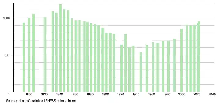 - ↑ Population municipale de référence en vigueur au 1er janvier 2025, millésimée 2022, définie dans les limites territoriales en vigueur au 1er janvier 2024, date de référence statistique : 1er janvier 2022.